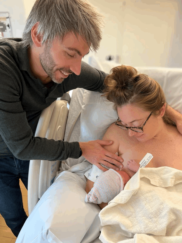 Adrienne and her husband just moments after the (unmedicated) birth of their first child